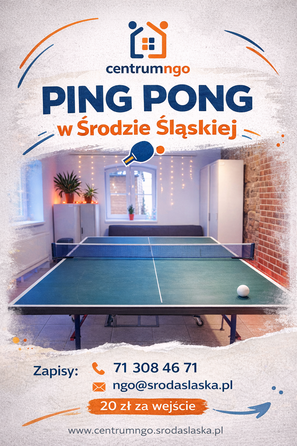 🏓✨ PING PONG w Środzie Śląskiej! ✨🏓srodaslaska18 marca, 2026Aktualności Masz ekipę i szukasz miejsca na wspólne granie? Mamy coś idealnego! Sala na wyłączność – tylko dla Was! Zapewniamy nagłośnienie – puść swoją muzykę i graj jak lubisz Na miejscu dostępne przekąski – żeby nie zabrakło energii! Zapraszamy małych i dużych Jedna opłata – tylko 20 zł za wejście dla całej grupy! Środa Śląska 71 308 46 71 ngo@srodaslaska.pl Zbierz znajomych, rodzinę albo ekipę z pracy i wpadajcie na luzie pograć! JG